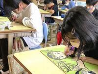 本日の6年生の図工では、版画に集中して取り組んでいます。算数では、2学期の学びを生かした問題に取り組んでいます。