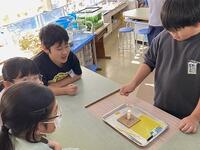 本日の5年生の算数では、角柱や円柱の底面や側面について調べています。また、理科では、水溶液から食塩やみょうばんを取り出せるのかを調べています。