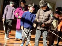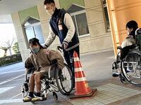 本日の3年生の総合的な学習の時間では、単元「福祉について考えよう」の中で、車椅子とアイマスク体験を行いました。