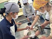 本日の5年生の家庭科では、団らんでつながりを深めるのに大切なおやつ「白玉だんご」作りです。体育では、跳び箱運動に挑戦中です。