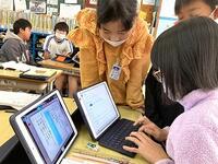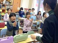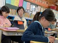 本日の4年生の国語では、調べたことをほうこくするために、タブレットのアンケート機能を使って、みんなへのアンケートを作っています。外国語活動では、英語の短いお話を聞いて、おおよその内容をつかもうとしています。
