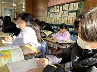 本日の2年生の国語では、2学期の学びの確認を繰り返しています。3年生の理科では、はね返した日光を重ねたときの温度の実験をしています。
