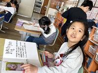 只今学校図書館では、「お正月宝くじ」イベントを実施中です。また、本日は、日南市「新春子どもの声を聴く会」に、6年生のお友達が学校の代表で発表しました。