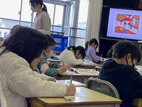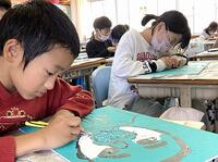 本日の4年生の図工では、ちょうこく刀を使って、木版画に挑戦中です。6年生の外国語科では、英語を使って「my best memory」を伝え合っています。