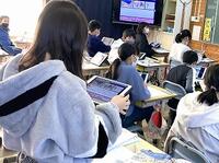 本日の5年生の算数では、割合の「もとにする量」を求める問題です。国語では、意見文を書くための見通しをもっています。また、6年生の国語では、日南市の未来について考えたことをプレゼンテーションをしています。