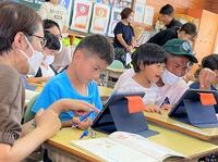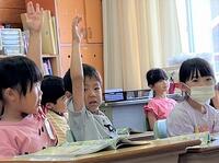 本日の1年生の国語では、「大きなかぶ」のお話を声に出して楽しんでいます。4年生の外国語活動では、「英語」を聞いて時刻を確かめています。5年生の家庭科では、「ソーイング」の振り返りをしています。