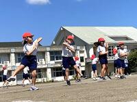 本日の2年生の体育では、「ジャンボリミッキー!」の曲に合わせて、 みんなで楽しく陽気に、運動会の踊りの練習をしています。