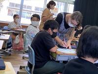 本日の4年生の外国語活動では、筆箱やかばんの中にもっているものをたずね合っています。