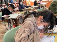 本日の2年生の国語です。声に出して読む練習をしています。また、漢字の小テストに集中しています。4年生の理科では、もののあたたまり方の実験結果から、分かったことを話し合っています。