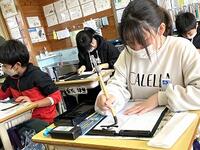 本日の6年生の算数では、これまで学習してきたことを確かめながら、6年のまとめ問題に挑戦中です。社会科では、国際連合の活動について調べ、交流しています。国語では、書きたい言葉を決めて、習字に表しています。