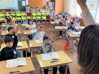 本日の1年生の図工では、粘土をひもにしながら、つくりたいものをつくっています。4年生の理科では、植物を育てる計画を立てています。5年生の国語では、学校図書館司書の先生から、図書の本の分類について学んでいます。