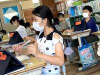 本日の2年生の国語では、漢字の復習に取り組んでいます。また、昼休みには、晴れ空の運動場で、元気にリレー遊びを楽しんでいます。3年生の外国語活動では、アルファベットで活動しています。