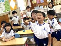 本日の2年生の国語では、漢字の復習に取り組んでいます。また、昼休みには、晴れ空の運動場で、元気にリレー遊びを楽しんでいます。3年生の外国語活動では、アルファベットで活動しています。