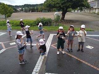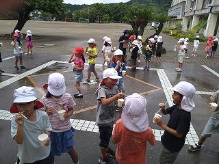 1年生が「夏の遊び」の一つとして、シャボン玉遊びをしていました。