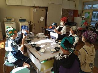 できあがったご飯とみそ汁をおいしそうに食べていました。