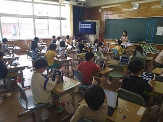 1年生もタブレットを使っています。