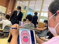 本日の2年生は、タブレットから送られてきた算数の練習問題を解いて、先生に提出しています。書写では、ていねいに文字を書いています。図工「わっかでへんしん」の自信作を披露してくれました。