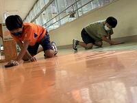 毎週火曜と木曜日の朝は、清掃の時間です。どの子も無言で、一生懸命に清掃に取り組んでいます。清掃後は、班長さんを中心に反省会をします。