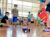 本日の3年生です。理科では、ゴムを伸ばす長さと車が動く距離の実験中です。書写では、毛筆で書くことに慣れてきました。