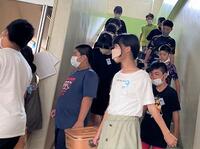 給食片付けの時間です。無言で静かに移動できるように気をつけて全校で取り組んでいます。