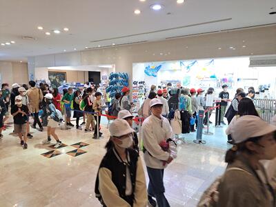 鹿児島水族館に到着しました。たくさんのお客さんが訪れています。