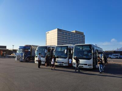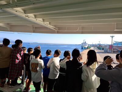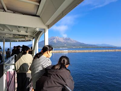 楽しかった水族館を出発して、子ども達は、フェリーで桜島港に無事到着しました。予定どおりです。