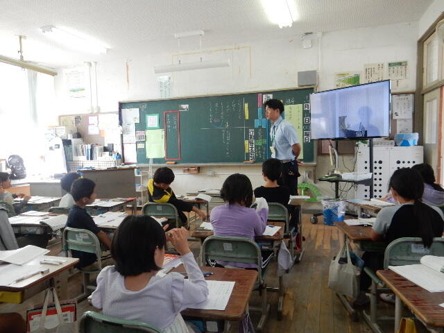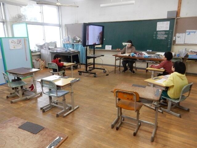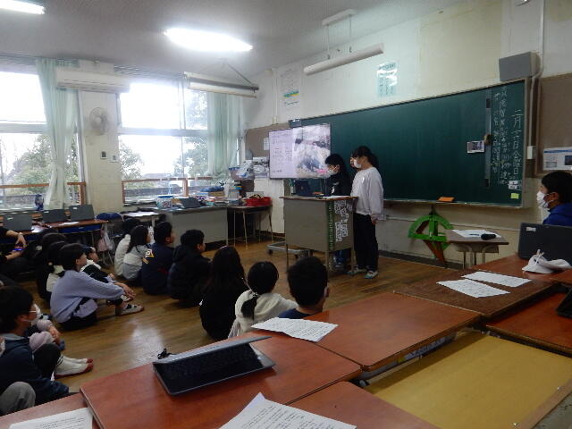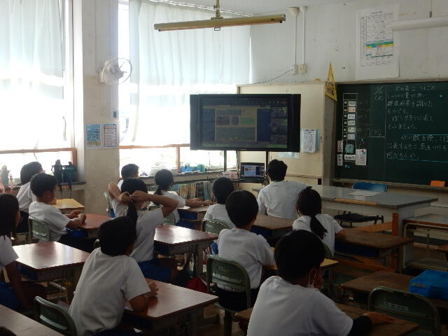 先日、6年生が鹿児島県垂水の協和小学校の6年生とオンライン交流をしました。福島小学校からは、本年度のくしま学の学習で作成した串間のPR動画を使った串間の紹介をしました。