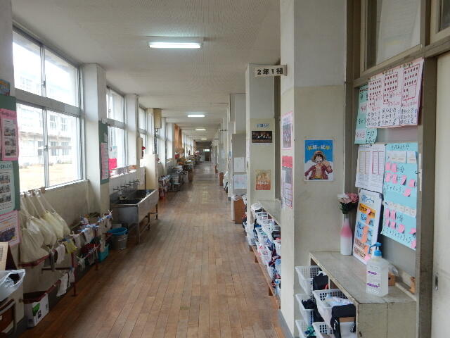 れ、子ども達の真剣な眼差しがとても印象的でした。その姿を写真に撮りたかったのですが、音を立てるのが憚られ、ろうかの様子を撮影するに留まりました。静けさが伝わるでしょうか?