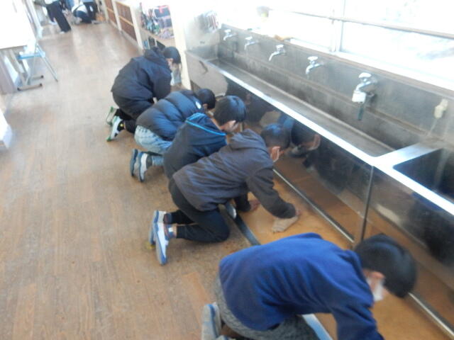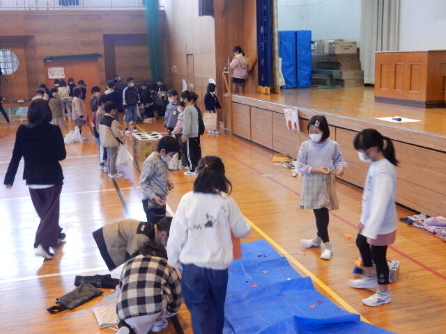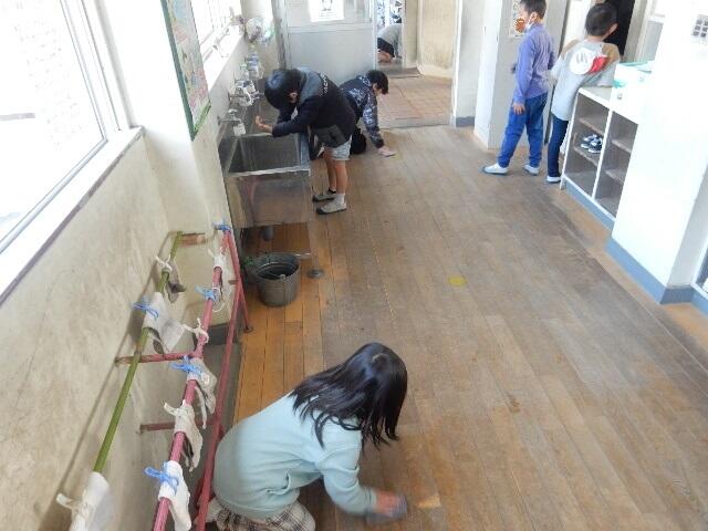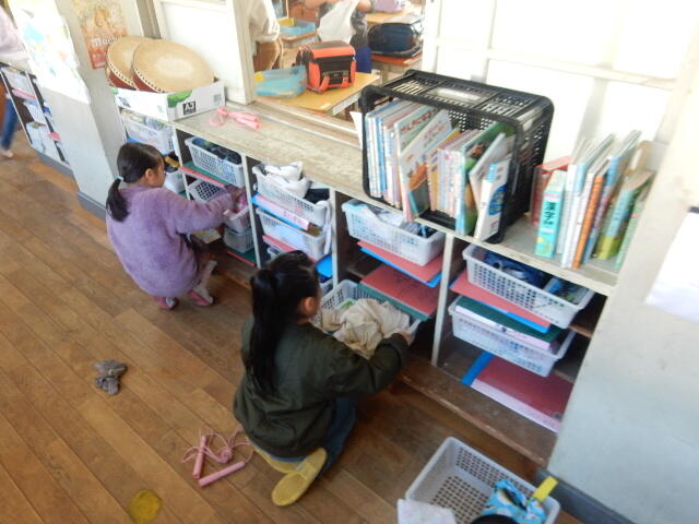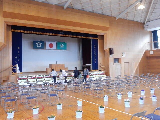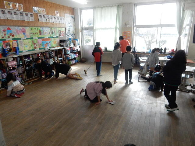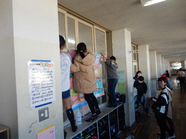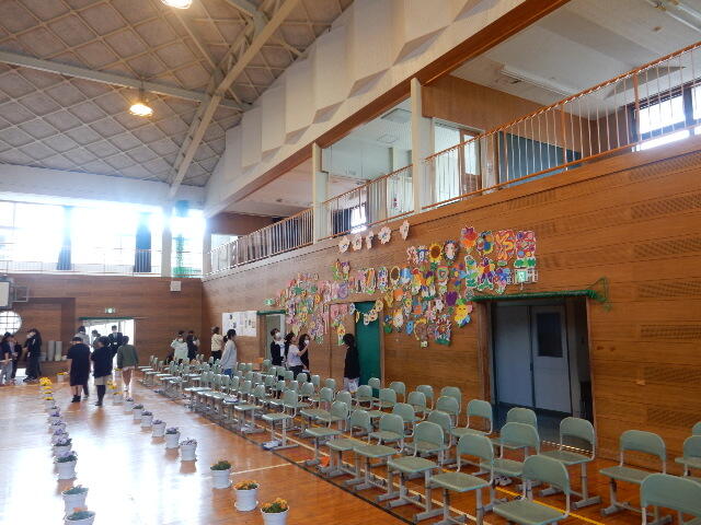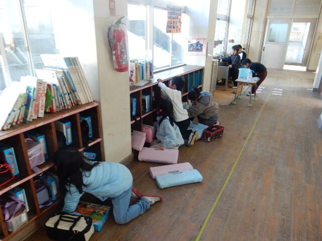 5校時は、卒業式前日準備でした。在校生代表の5年生と職員で、式場や教室を中心に準備しました。
