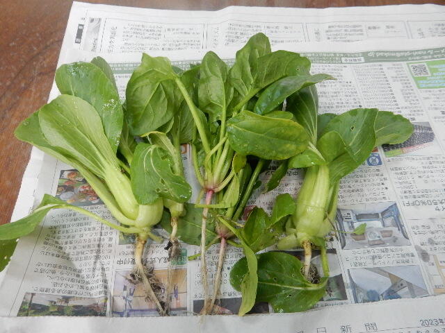 プール横に、学校の畑があります。一時期、大量の雑草に覆われていた土地ですが、環境整備員さんが少しずつ、そして根気強く整備と手入れを続けられ、現在の畑へと生まれ変わりました。ここに白菜、大根、玉葱、長ネギ、キャベツ、ほうれん草などの野菜を植えて、6年生の子ども達が日々お世話に取り組んでいます。
