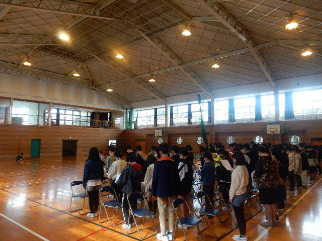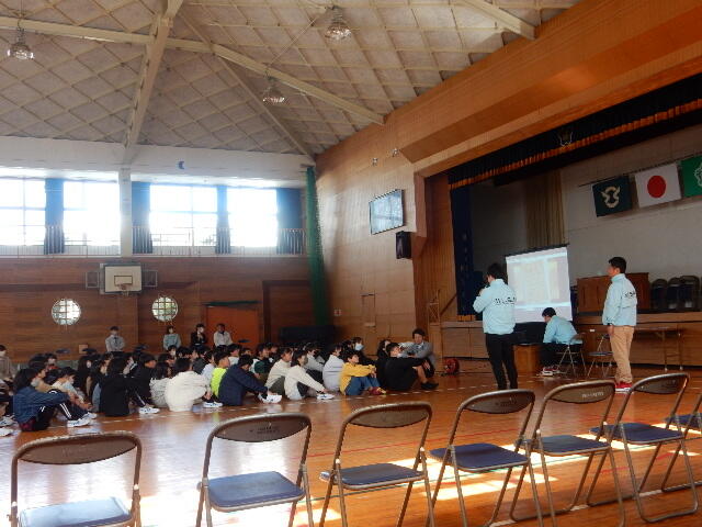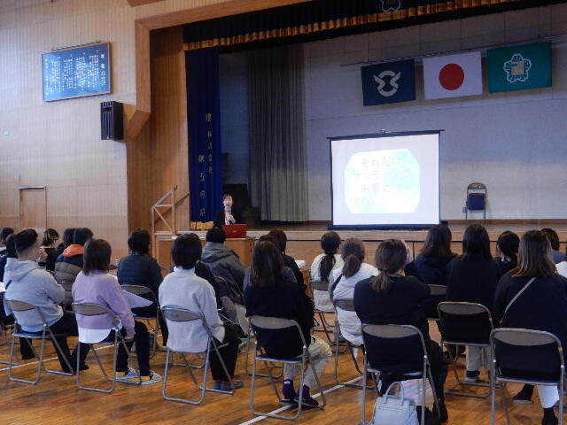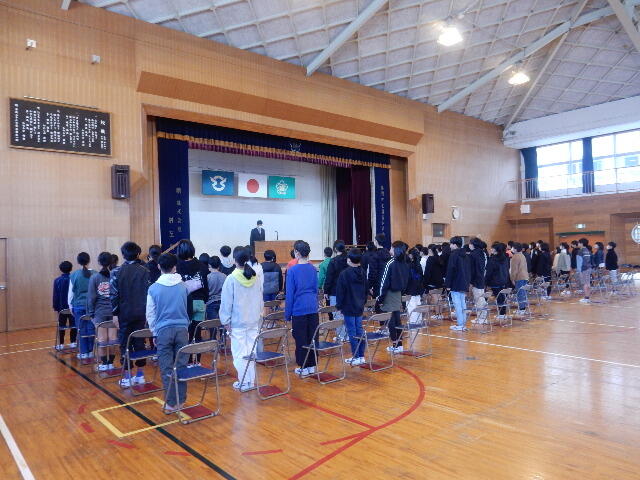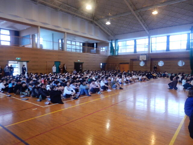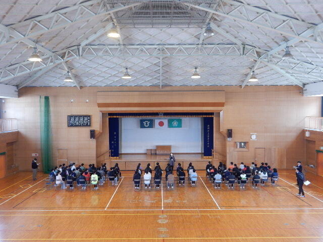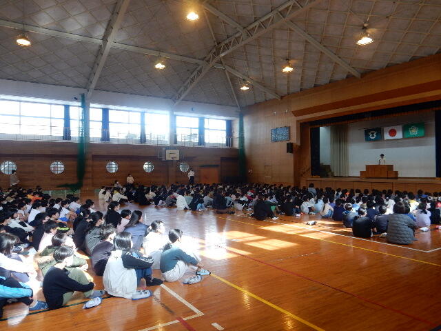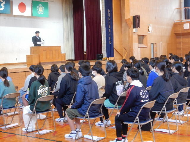 修了式後は、生徒指導担当の先生から春休みの過ごし方についての話を聴きました。