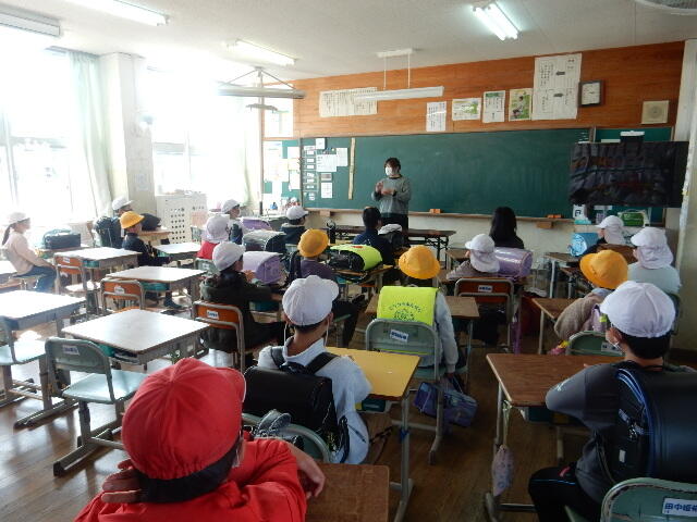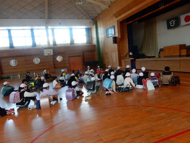 子ども達は、放送の合図で各地区の集合場所へ移動し、班のメンバーや注意事項を確認した後、集団下校を行いました。