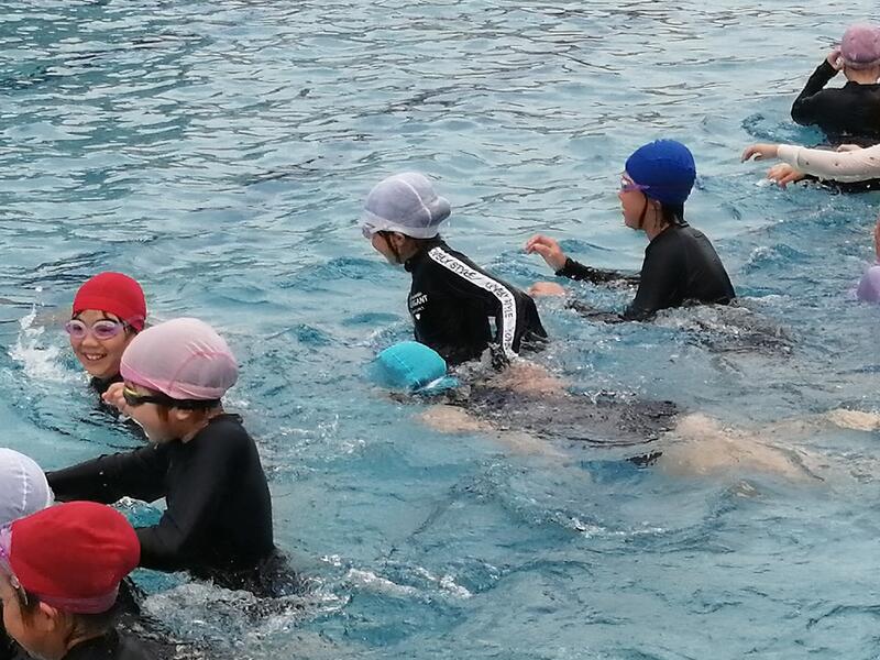 今日は串間市消防署の方の協力をいただいて、3年生を対象に着衣泳「ういてまて教室」が行われ、水の事故に遭遇した場合の対応の仕方について学びました。今回子どもたちは水着の上から服を着て、さらに履物をはいて学習に臨みました。                                                                                                              まず消防署の方から、全国で毎年多くの水の事故が発生していること、そしてたくさんの方が亡くなっていてその中には小学生も含まれること等、水の危険についてのお話がありました。そのあと、プールに入る前の水慣れの仕方、プールへの入り方、おぼれた時の助けの求め方などを実際に見せていただいて、プールに入りました。水の中に入ると、子どもたちはいつもと違って服を着ていてさらに履物もはいているのでとても動きにくいことを体感していました。                                                                                              そしていよいよペットボトルを使っての水に浮く学習を行いました。最初はうまく浮かずに何回も挑戦していましたが、力を抜くと上手に浮くことを教えてもらうと、子どもたちはすぐにプカプカと水に浮くことができるようになっていました。                                                           夏休みを前に、命を守るための学習でしたが、この学習が生かされることがないことを願うばかりです。