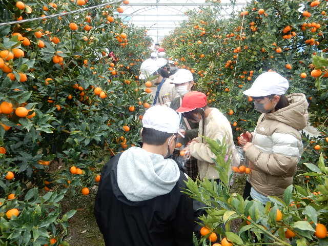 昨日から本格的な収穫が始まったそうですが、今日の子ども達の体験のために、キンカンの樹木2列は未収穫のままにしておいていただいたそうです。
