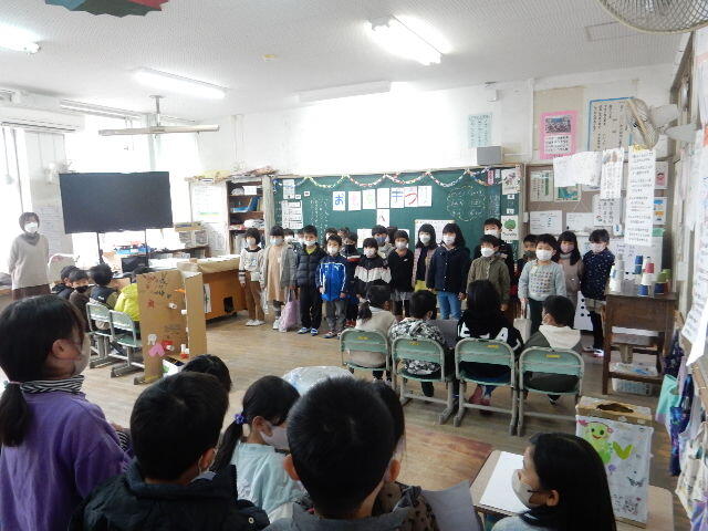 ※ 放送日は、来月2月17日(金)。(2月参観日の予定日と同じ日です。)今回の取材は、10時台のコーナーで放送されますが、校歌は、1フレーズずつ8時43分頃と9時30分頃にも放送されるそうです。