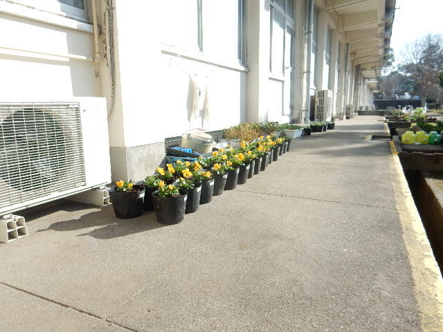 学校は今週、花植え週間、全校児童が一人一鉢の準備を進めました。3月の卒業式や4月の入学式をたくさんの花で迎えようと、子ども達一人一人が準備に取り組んでくれました。
