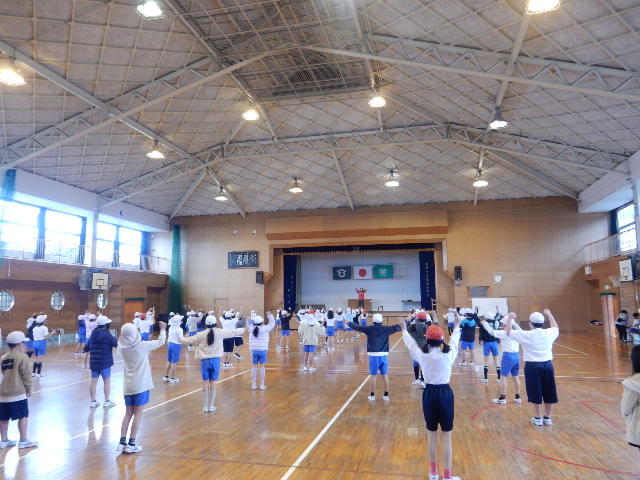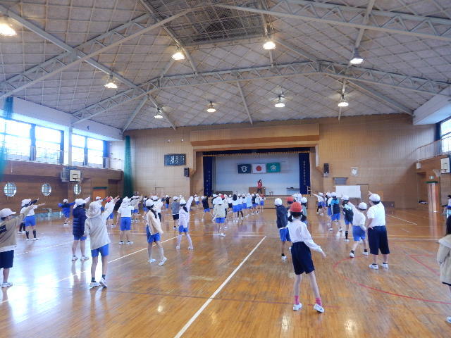 今週はどの学年も体力テストが予定されています。今日の午前中は、3年生と4年生が合同でテストを行いました。これまでの本校の体力テスト結果は、全体的な傾向として、20mシャトルランや立ち幅跳びなどどの学年もTスコア50を下回る種目が多く、体力向上についての課題が見られています。
