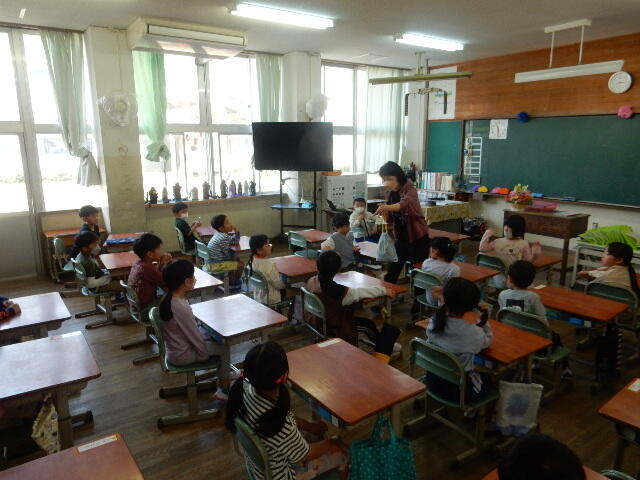 先日、本校の隣にあるちぐさ保育園へ私(校長)と職員2名で伺いました。園長先生より5歳児のさくら組さんの活動参観のご案内をいただいたのがきっかけです。