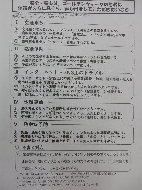 新型コロナの影響で、学校からなかなか外へ出られなかった子ども達ですが、状況をみながら、機会をとらえて積極的に地域へ出向いてくださいね。6年生の皆さん、期待していますよ!
