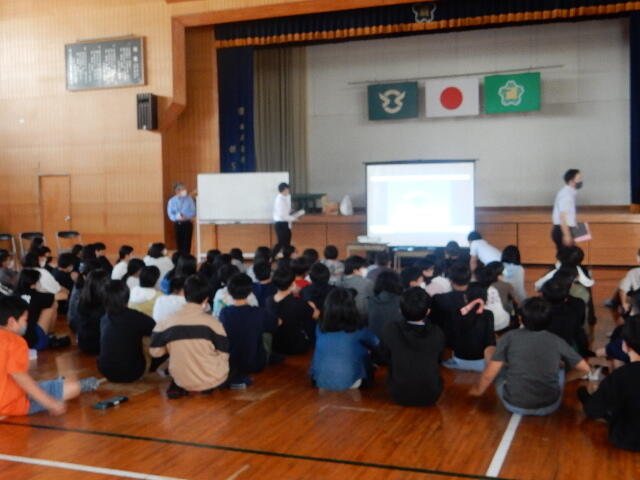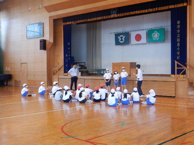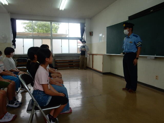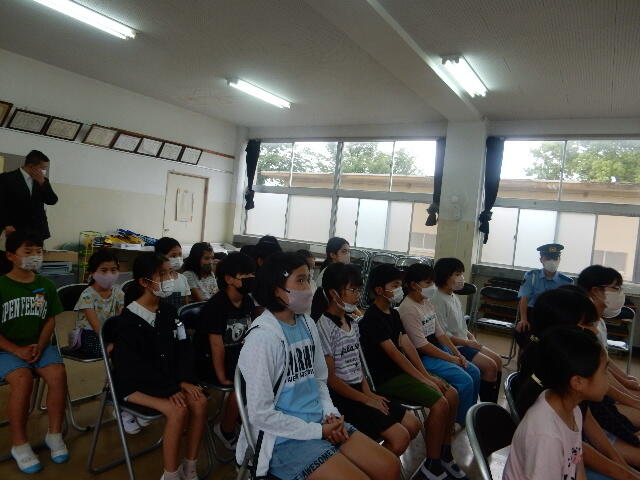 また、子ども達は、串間市役所の方から本校の交通少年団は平成5年から30年の歴史のある活動であることや、串間警察署の方からも福島小校区の安全を守ることの大切さなどのお話を聴きました。