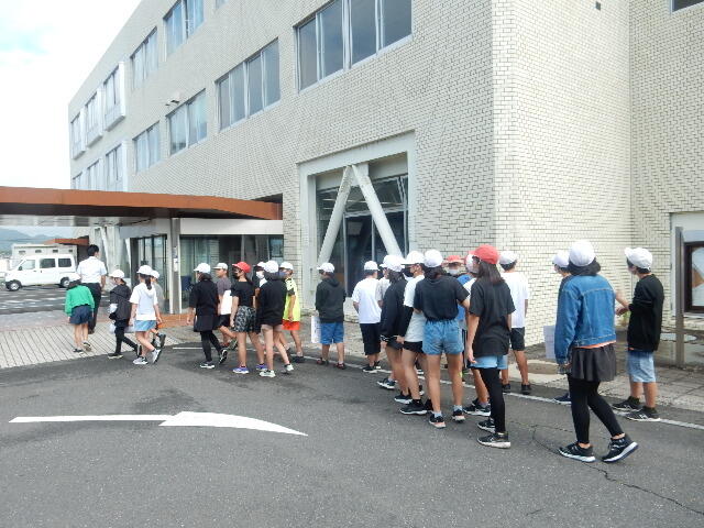 くしま学の防災ウォークラリーの学習へ歩いて出発しました。