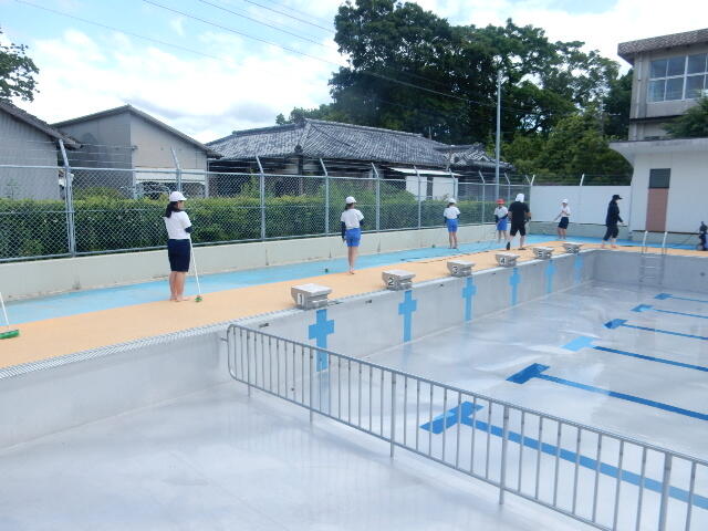 今日は午前中から6年生が学級ごとにプール清掃に取り組んでくれました。あと1週間もすると6月。いよいよ本年度の水泳学習が始まります。
