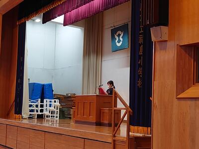 校長の話、修了証の授与(各学年代表児童)、2年生と5年生の代表児童の作文発表(校歌斉唱はインフルエンザの流行のためカット)という内容でした。