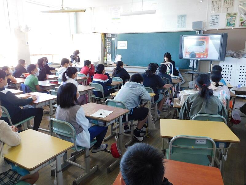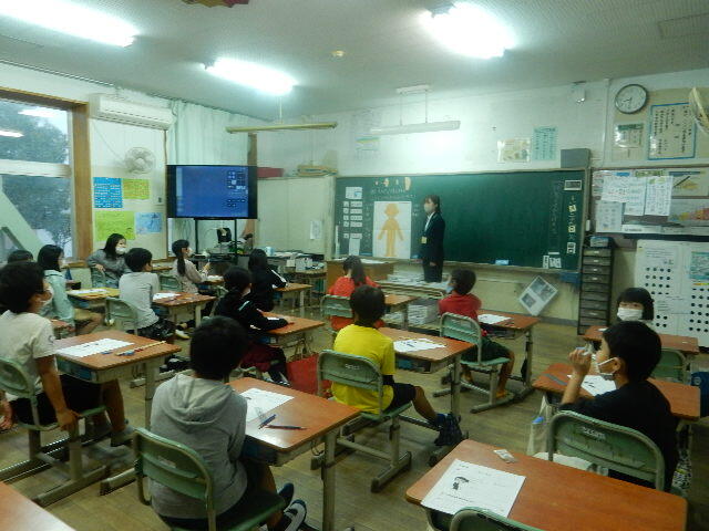 午後、市体育館にて市内の5年生が集まり、キャリア教育ワークショップで学びました。どのブースのお話も、その道のプロの方がされるだけあって、子ども達の心をグッと引き付ける内容でした。また、実際の道具なども見せていただくなどして、興味関心が高まる工夫をしていただきました。子ども達にとって教室では決して経験できない、貴重な学びの時間となりました。