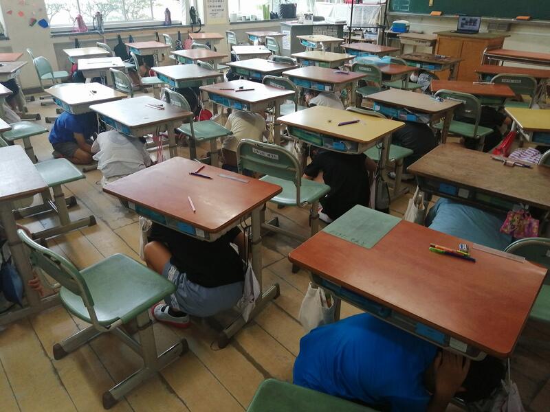 今日は、台風10号接近のため延期になっていた避難訓練(地震、津波)が実施されました。                                                   まず、子どもたちは各教室で先生から地震の怖さについて話を聞き、避難への意識を高めた後、避難の仕方、避難経路について確認をしました。今日はあいにくの雨のため、運動場への避難はできませんでしたが、子どもたちの真剣な態度はとても立派でした。                           本校は海抜15mにあります。しかし、津波の際はより安全な屋上へ避難することになっています。宮崎県は8月8日に大きな地震があったばかりです。常に意識できるように、訓練を繰り返し行っていきます。