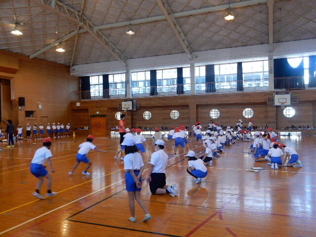 今週はどの学年も体力テストが予定されています。今日の午前中は、3年生と4年生が合同でテストを行いました。これまでの本校の体力テスト結果は、全体的な傾向として、20mシャトルランや立ち幅跳びなどどの学年もTスコア50を下回る種目が多く、体力向上についての課題が見られています。