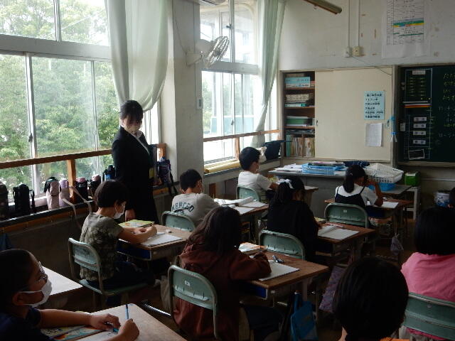今週から来週までの2週間、本校に教育実習生が来ています。今日は4年生のクラスで初めての研究授業を行いました。