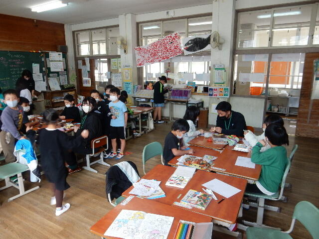 また、このお別れ遠足に合わせて、将来の学校の先生を目指している南九州大学(都城市)の7名の学生さんが本校を訪れ、1年生の子ども達との交流体験も行っていただきました。ありがとうございました!