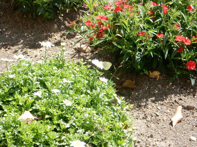 花壇には何とモンシロチョウか!