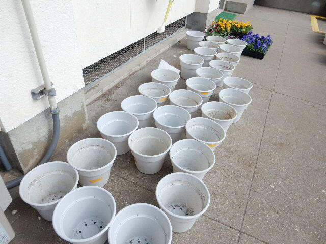 栽培委員会は、一人一鉢用のボラ土の仕分けしていました。